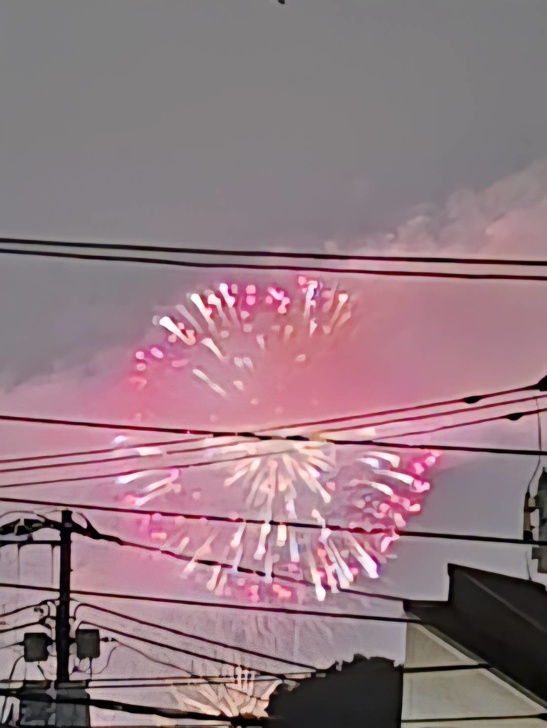 #多摩川花火大会 #カメラだと迫力伝わらないなぁ #電線一杯だし #でもこれもまたよし